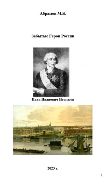 В библиотеку "Клуба адмиралов" поступила книга М.Абрамова "Забытые Герои России.Иван Иванович Неплюев"