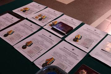 Участники церемонии, члены инициативной группы по строительству духовно-исторического комплекса в честь святого праведного воина Феодора Ушакова в Левобережном в Москве, получили награды от Минобороны России за заслуги в духовно-нравственном и военно-патриотическом воспитании личного состава Вооруженных Сил Российской Федерации. Их поощрили ведомственными медалями «За веру и служение отечеству» и государственными наградами Луганской Народной Республики почетными знаками «За гуманитарную Помощь». Награды вручали главнокомандующий ВМФ (2005-2007), Адмирал Флота, генеральный инспектор Минобороны России Владимир Васильевич Масорин, главнокомандующий сухопутных войск (2012-2013), генерал-полковник, генеральный инспектор Минобороны России Владимир Валентинович Чиркин и глава Департамента культуры Минобороны России Артем Владимирович Горный.