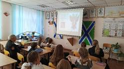 Второй частью занятия стала тема «Андреевский флаг». Предложил юнгам небольшой ролик об истории Андреевского флага, который они посмотрели с большим интересом. К сожалению, звонок в гимназии возвестил об окончании урока.
