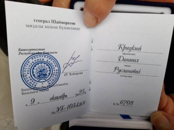 30.10.2025 г. вместе с генералом А.А.Асадуллиным и Айдаром Шарипкуловым посетил ЦВКГ им. А.А.Вишневского. Повод самый серьезный. Студент факультета политических и социальных наук РГСУ, будущий психолог, сержант Крицкий Даниил Русланович, Указом Главы Республики Башкортостан Р.Ф. Хабирова, за героизм и мужество, проявленные при выполнении боевых задач на СВО, награжден медалью «Генерал Шаймуратов».