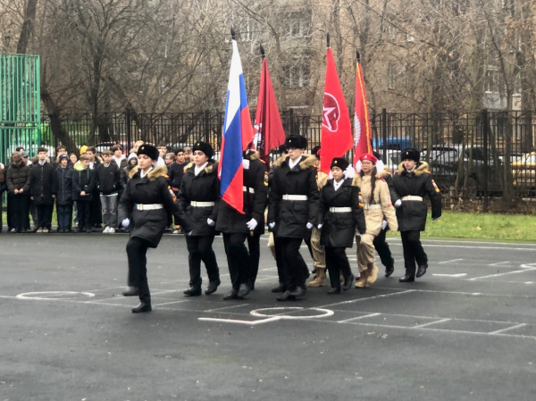 Затем все присутствующие гости , ветераны Вооруженных Сил и Труда Левобережного района столицы с большим воодушевлением и под громкие аплодисменты сопроводили торжественное прохождение строем юнармейские и кадетские отряды . Совместное фотографирование ветеранов с молодыми кадетами и юнармейцами завершило эту памятную военно-патриотическую акцию , которая надолго запомнится будущим защитникам Родины в году 80-летия Великой Победы. Стоит добавить , что на базе постоянно действующего школьного исторического музея , силами учеников медиа класса готовятся и демонстрируются мобильные передвижные фотовыставки , образцы военной атрибутики , а юные экскурсоводы регулярно проводят лектории и сообщения, посвящённые героям Великой Отечественной войны и участникам специальной военной операции, занимают призовые места на исторических школьных олимпиадах.