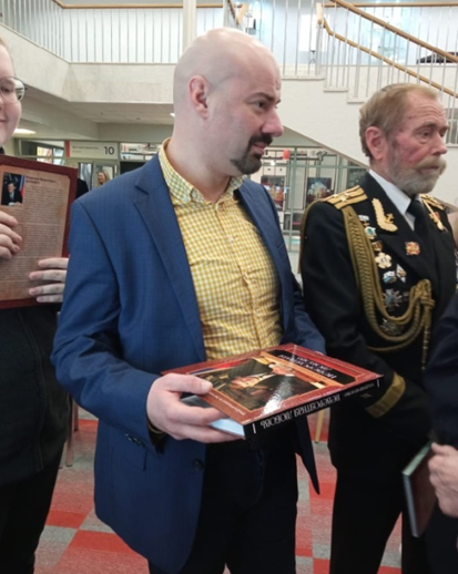 памятную медаль Владимиру Филипповичу вручил его коллега по преподавательской работе в Пограничной Академии ФСБ РФ - профессор, доктор исторических наук генерал-майор Александр Михайлович Касьянов; при этом он и сам был награжден золотым знаком "Z" Союза ветеранов ВМФ;
