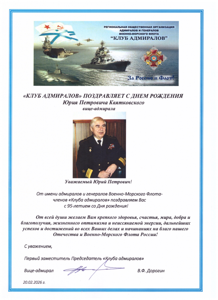 20 февраля - 95 лет вице-адмиралу Квятковскому Ю.П.