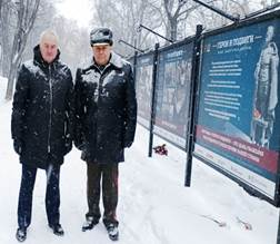 Слева экскурсию ведёт сотрудник РВИО Виктория Петракова, справа А. В. Картаполов и А. И. Студеникин на фотовыставке