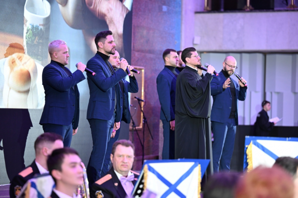 Перед участниками приёма выступили с концертной программой морской тематики артисты Дважды краснознамённого Ансамбля им. Александрова и Образцовый оркестр ВМФ им Римского - Корсакова .