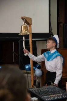 Сигналом к началу фестиваля стали удары судового колокола, которые по команде Юрия Павловича энергично подал член клуба «Юнга» Гимназии им. А. Грина Ваня Бусоргин.