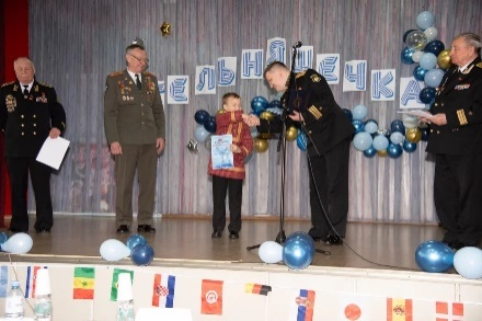 С. Кожевников вручил директору Гимназии им. А. Грина города Кирова Елене Юдиной Благодарность за активное участие в военно-патриотическом воспитании молодежи и развитие военно-политической патриотической работы, Юрию Малых, кроме благодарности, преподнесенной накануне в офисе КРО РСВ - «Книгу-альманах 330 лет Военно-Морскому флоту».