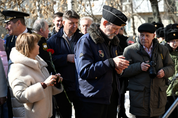К обелиску АПЛ " Волк" были возложены красные гвоздики, состоялась памятная фотосессия.
