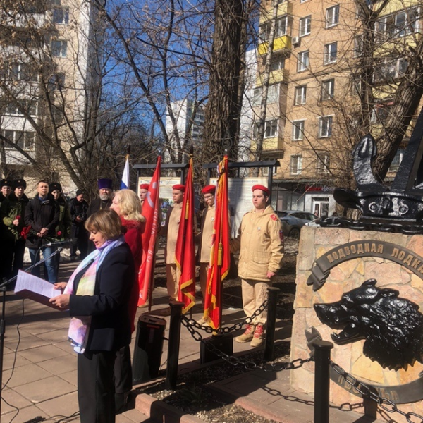 Торжественный митинг начался с построения и вноса знамён , исполнения Государственного гимна России. Перед собравшимися выступили руководитель фракции " Справедливая Россия " в Мосгордуме Е. Н. Ямщикова, Глава муниципального образования района Соколиная гора И. Л. Юрманова, Председатель Объединённого совета ветеранов войны и ВМФ Московского Комитета ветеранов войны капитан 1 -го ранга в отставке В. И . Васильев , Член правления Клуба адмиралов и генералов ВМФ контр-адмирал в отставке А. Г. Дьяконов, первый заместитель председателя Московского городского Совета ветеранов А. П. Аксёнов, Председатель комиссии Совета по делам национальностей при Правительстве Москвы Ю. В. Московский , председатель Морского собрания Тульской области капитан 1-го ранга в отставке В. К. Чиджавадзе, бывшие командир и старший помощник в первом экипаже АПЛ " Волк", капитаны 1-го рангов отставке О. А. Тёлушкин и В. А. Монастыршин и секретарь РОО " Союз подводников " капитан 1-го ранга в отставке А. Б. Давидович.