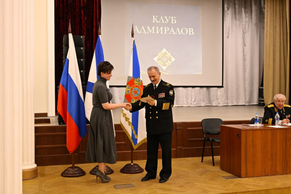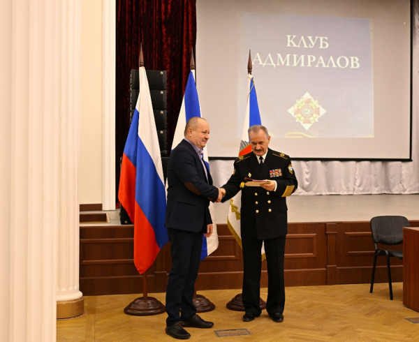Адмирал флота Масорин В.В. вручил удостоверения и атрибутику Клуба новым членам Клуба: