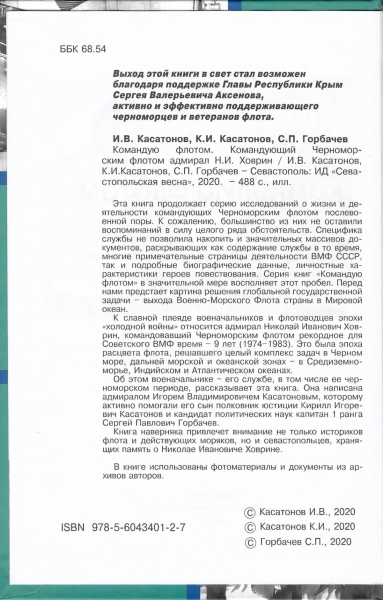 - «Командую флотом»: Командующий Черноморским флотом адмирал Н.И.Ховрин. Книга пятая (2020) в соавторстве с К.И. Касатоновым и С.П.Горбачёвым.