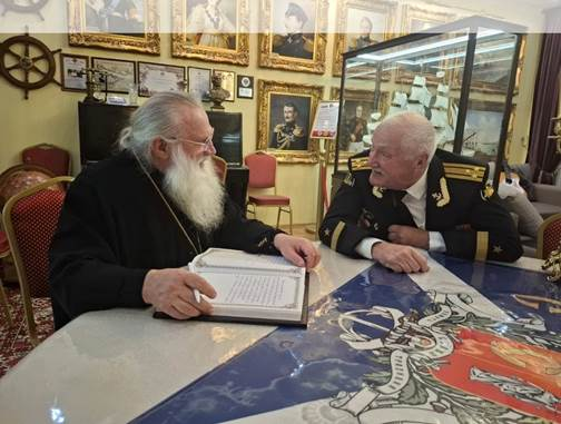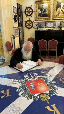 Особой нотой стало благословение Владыки. Он оставил тёплый отзыв в книге почётных гостей и пожелал музею дальнейших успехов в служении Родине и её морским традициям.