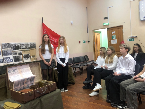 Затем все присутствующие гости , ветераны Вооруженных Сил и Труда Левобережного района столицы с большим воодушевлением и под громкие аплодисменты сопроводили торжественное прохождение строем юнармейские и кадетские отряды . Совместное фотографирование ветеранов с молодыми кадетами и юнармейцами завершило эту памятную военно-патриотическую акцию , которая надолго запомнится будущим защитникам Родины в году 80-летия Великой Победы. Стоит добавить , что на базе постоянно действующего школьного исторического музея , силами учеников медиа класса готовятся и демонстрируются мобильные передвижные фотовыставки , образцы военной атрибутики , а юные экскурсоводы регулярно проводят лектории и сообщения, посвящённые героям Великой Отечественной войны и участникам специальной военной операции, занимают призовые места на исторических школьных олимпиадах.