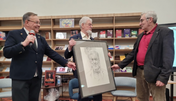 особый подарок - его портрет - передал Владимиру Филипповичу давний товарищ и партнер ветеранов Флота - известный скульптор и график, заслуженный художник России Олег Георгиевич Закоморный.