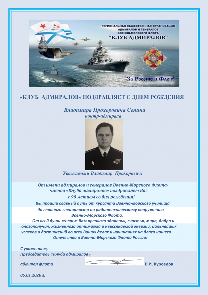 5 января - 90 лет контр-адмиралу Сенину В.П.