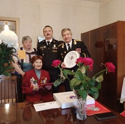 24.01.2026г. 24 января с.г. исполнилось ровно 100 лет ветерану Великой Отечественной войны и Военно-Морского флота Зинаиде Васильевне Кашкаровой, ныне проживающей в Москве. Войну она встретила в столице, участвовала в защите Москвы, гасила фугасные бомбы на крышах домов, рыла окопы, помогала врачам в госпитале. В 1941 году была открыта Московская военно-морская школа , в которую юную Зинаиду сразу приняли за хорошее знание английского языка. По окончанию школы в 1942 году девушку отправили радисткой -шифровальщицей на Тихоокеанский флот. Проходила службу на ледоколе " Лазарь Каганович", участвовала в обеспечении конвойных операций на Севере. Её бдительность и высокие профессиональные навыки однажды спасли жизни советских моряков , когда она перехватила вражеское сообщение о готовящемся нападении фашистов на остров Диксон. Победу старшина 2-статьи Зинаида Кашкарова встретила на боевом посту. В мирное время Зинаида Васильевна окончила институт радиоэлектронной промышленности и Московский Государственный университет им. М. В. Ломоносова. Долгое время проработала в Министерстве электронной промышленности СССР. Награждена орденами Отечественной войны 2-й степени , Трудового Красного Знамени , Знай Почёта , медалями " За оборону Советского Заполярья", " За победу над Германией в Великой Отечественной войне", " 300 лет Российскому флоту " и многими другими. В день своего 100-летнего юбилея Зинаида Васильевна получила поздравление от мэра Москвы С. С. Собянина, памятные адреса от объединенного Совета ветеранов ВМФ Московского Комитета ветеранов войны, Международного комитета ветеранов ( военных пенсионеров) стран СНГ и президиума совета ветеранов Северного флота, которые передали член «Клуба адмиралов» генерал-майор Щербина А. Н. и капитан 1-го ранга Лаптев Н. В. Они же вручили юбиляру-фронтовику букеты цветов памятные часы " 80 лет Победы " и другие подарки .