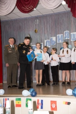Кроме того, Александр Бушмакин, от Российского союза ветеранов вручил медаль «За военно-патриотическое воспитание молодежи» директору Гимназии им. А. Грина Елене Юдиной и от Национальной ассоциации объединений офицеров запаса Вооруженных Сил МЕГАПИР вручил Грамоту композитору Игорю Русских.