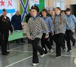 Физкультурный зал украсили флаги Военно-морского флота, береговой охраны Пограничной службы ФСБ России и флаги расцвечивания.