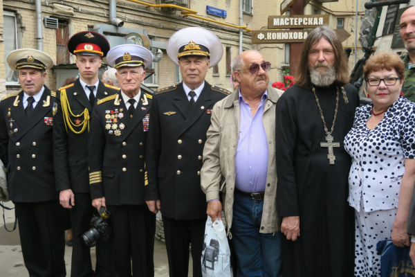 На церемонии установки памятной доски присутствовали: - Фёдор Конюхов и члены его семьи; - дочь А.И.Маринеско - Маринеско Татьяна Александровна; - адмирал Селиванов В.Е., вице-адмирал Кондаков В.Г., капитаны 1 ранга Васильев В.И. и Абрамов Ф.Н.; - ветераны Военно-Морского флота; - представители СМИ.