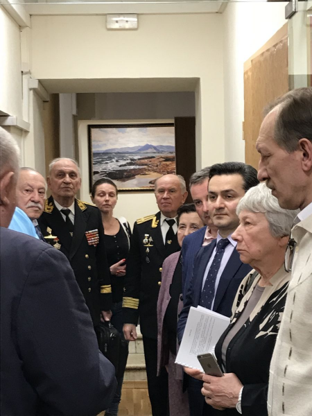 В заседании комиссии по установке памятника под руководством заместителя Председателя РСВ, заместителя Председателя «Клуба адмиралов» генерал-майора В.И.Романенко приняли участие представители ветеранских организаций армии и флота, члены «Клуба адмиралов»: вице-адмирал Ю.П Квятковский, контр-адмирал Н.П.Мартынов, контр-адмирал Е.Н.Алексеев, а также заместитель Президента Союза армян России Левон Муканян, частные благотворители – Полина Таскаева и Вероника Царева.
