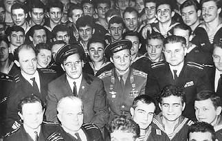 10 декабря 1965 года заместитель начальника ЦПК СССР по летно-космической подготовке полковник Юрий Гагарин прибыл в Мурманск в составе внушительной делегации ЦК ВЛКСМ для вручения переходящего Красного Знамени Мурманскому обкому комсомола за успехи в шефской работе над Краснознаменным Северным флотом.